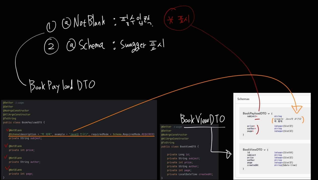 - 즉, requiredMode = REQUIRED는 문서상 필수임을 나타내고, @NotBlank는 런타임에서 유효성을 강제하는 역할을 합니다.